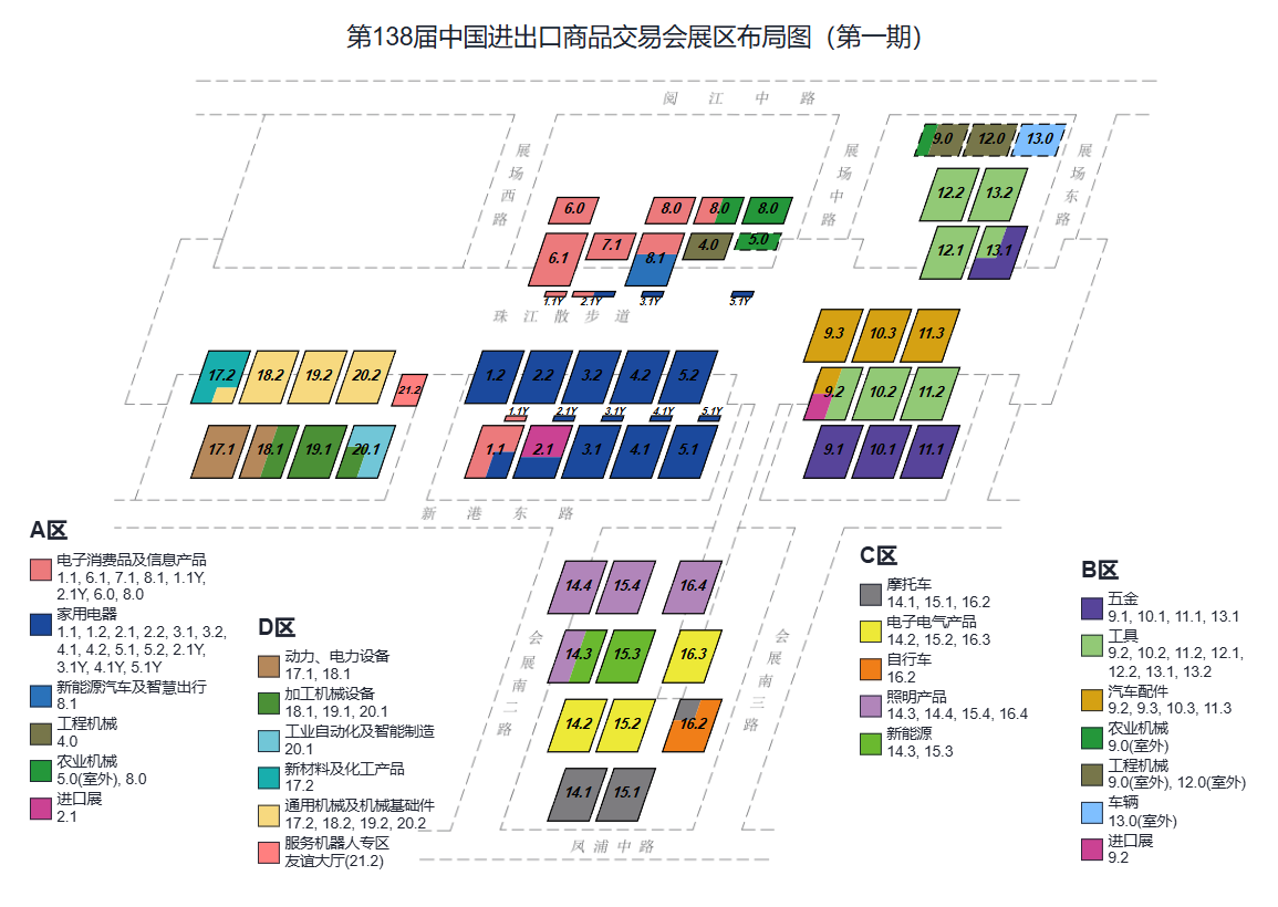 家用电器,电子消费品及信息产品,进口展,服务机器人专区,工业自动化及智能制造,加工机械设备,动力、电力设备,通用机械及机械基础件,工程机械,农业机械,新材料及化工产品,新能源汽车及智慧出行,车辆,汽车配件,摩托车,自行车,照明产品,电子电气产品,新能源,五金,工具。